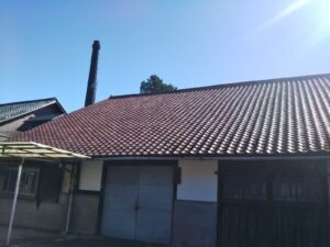 煙突を挟んで建つ旧蔵二棟は、慶応年間の建造と伝えられ、推定築160年前後の建物です。