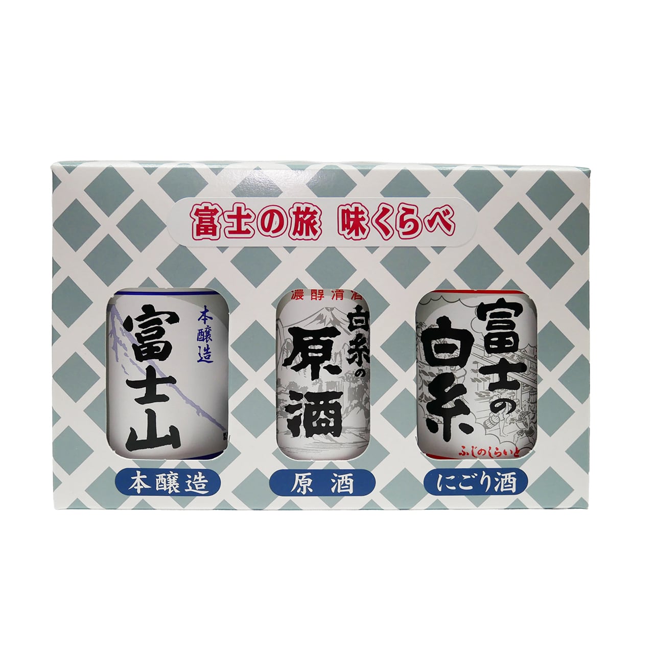 辛口 富士山・中口 白糸の原酒・甘口 富士の白糸の3種類のカップ酒をお楽しみいただけます。