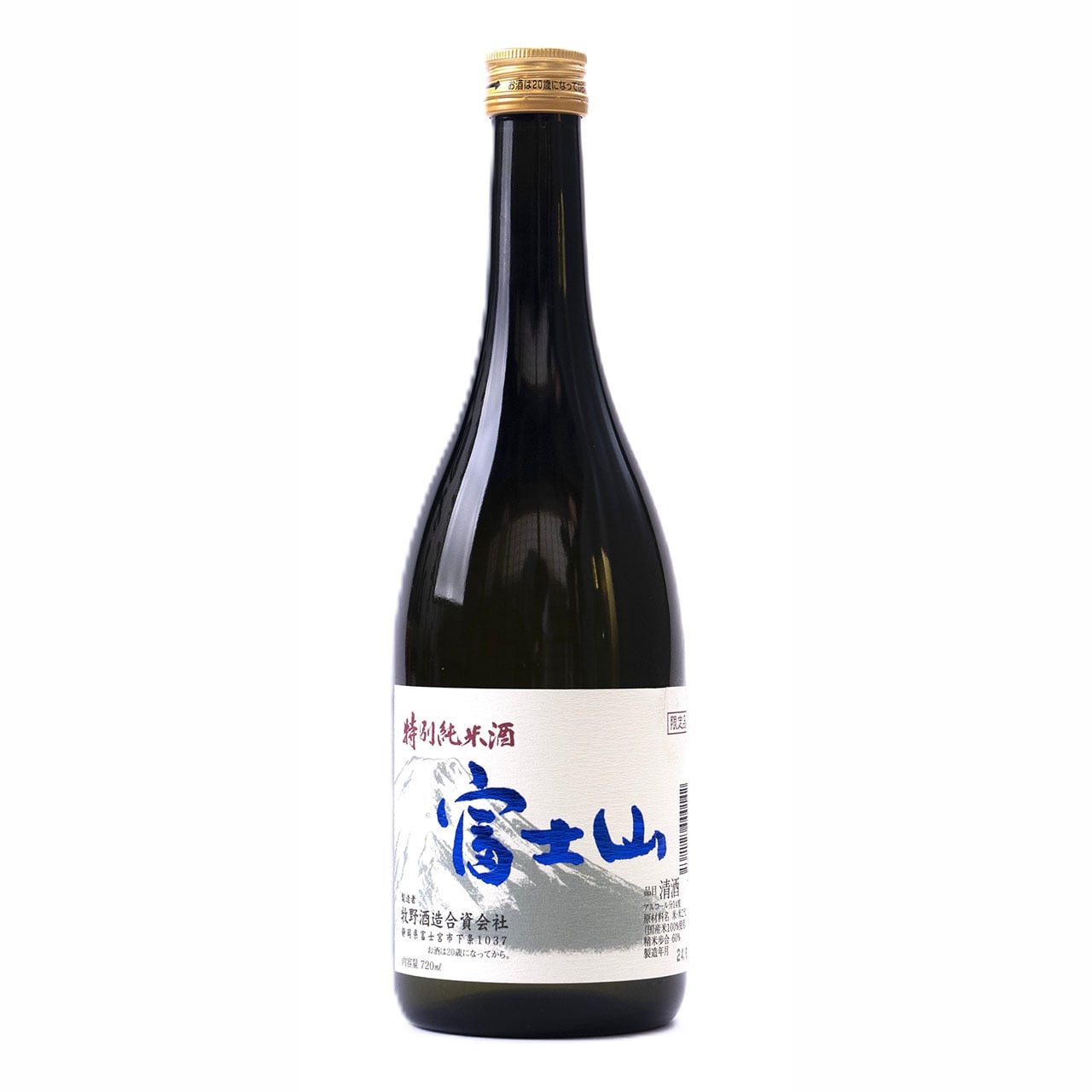 牧野酒造のラベル人気№1。品のあるロイヤルブルーに光る富士山。